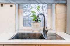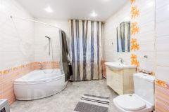 Дом построен из теплоблоков, имеет просторную и удобную планировку, высокие потолки. На 1 этаже дома расположена большая кухня и гостиная с выходом на террасу и внутренний двор, большой санузел с окном, прихожая, генераторная.