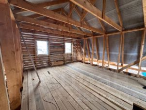 На территории стоит двухэтажный деревянный дом на сваях. Центральное водоснабжение проходит по улице, и у вас есть возможность подключить его в доме. Участок частично огорожен.