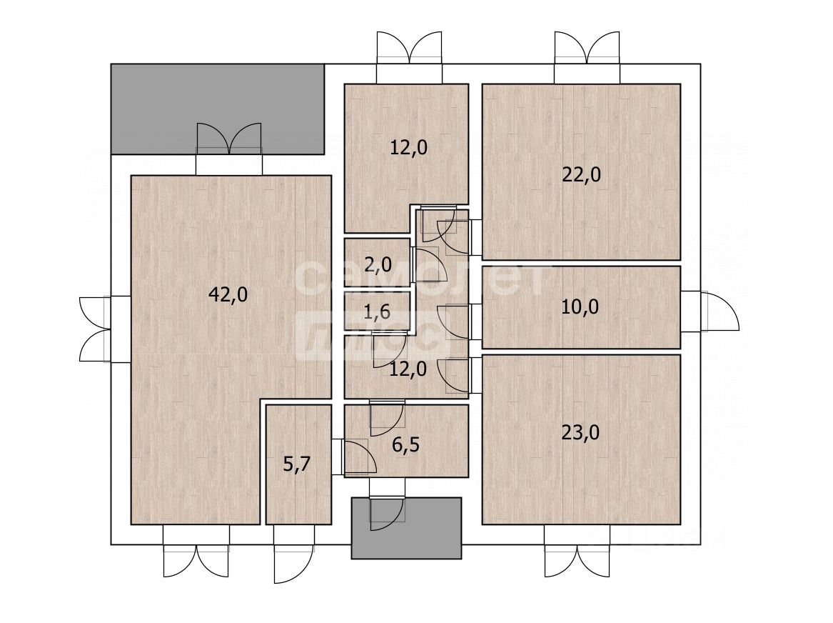 2 сан. узла 10м2 и 2.0 м2, гардеробная комната 1.6 м2.