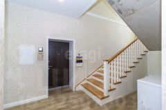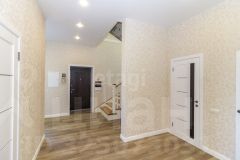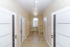 Дом выполнен в 2 этажа из керамзитоблоков, облицован качественным кирпичом и утеплен минеральной ватой. Построен по индивидуальному проекту с использованием высококачественных материалов, находится в чистовой отделке. В доме высокие потолки, перекрытия из бетонных плит, крыша из мягкой черепицы, стены и полы выровнены под маяк. Пластиковые окна в тон облицовки, на второй этаж ведет бетонная лестница. Все сантехнические коммуникации и электроразводка выполнены.