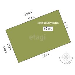 6,5 соток, правильной формы, угловой, что очень удобно для организации заезда. Участок находится во 2 очереди коттеджного поселка с уже активной застройкой.