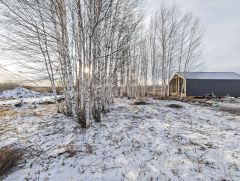 Дом площадью 51,9 м² с террасой 7,5 м² и балконом 5 м² расположен на участке 5 соток в ДНТ "Зеленый Бор" в черте города, в районе Верхнего Бора. Объект предлагает редкую возможность приобрести современный экологичный дом для круглогодичного проживания или загородного отдыха по фиксированной стоимости. В текущем году выполнена отсыпка дороги, что гарантирует беспроблемный подъезд в любое время года, ведутся работы по подключению центрального водопровода. В планах на следующий год — организация контролируемого въезда с шлагбаумом и видеонаблюдением. Вся необходимая инфраструктура — школы, детские сады, магазины — находится в 5-10 минутах езды на автомобиле. В 5 км расположена база отдыха "Верхний Бор" с горячими источниками. Участок отличается собственной березовой рощей, что является уникальным преимуществом, и позволяет разместить парковку, гараж, мангальную и релаксационную зоны. Дом построен по каркасной технологии с усиленным утеплением в 200-300 мм каменной ватой Knauf Nord, что обеспечивает высокую энергоэффективность и низкие затраты на отопление. Фундамент на винтовых сваях, внешняя и внутренняя отделка — имитация бруса. Крыша из профнастила утеплена 200 мм минеральной ваты. В доме выполнена чистовая отделка, проведены все коммуникации, включая электричество 220В. Планировка включает спальню с возможностью зонирования на две комнаты, совмещенную кухню-гостиную с выходом на террасу и санузел. Отопление реализовано на кварцевых обогревателях "Теплэко", установлены энергоэффективные пластиковые окна с газонаполнением, возможна организация высокоскоростного Wi-Fi. Объект соответствует критериям для оформления семейной ипотеки.