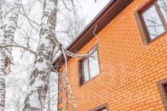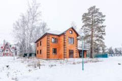 Дом расположен на просторном угловом участке площадью 10 соток, окруженном живописными деревьями. Благодаря угловому расположению, вы сможете организовать два удобных заезда на участок.