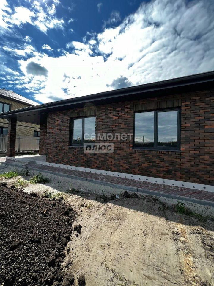 Дом из керамзитоблоков, облицован керамическим кирпичом. Монолитная плита 40 мм. Кровля из гибкой черепицы.