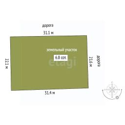 Участок 6,85 соток (21,6х31,4 м.). Огрожен забором, есть распашные ворота.