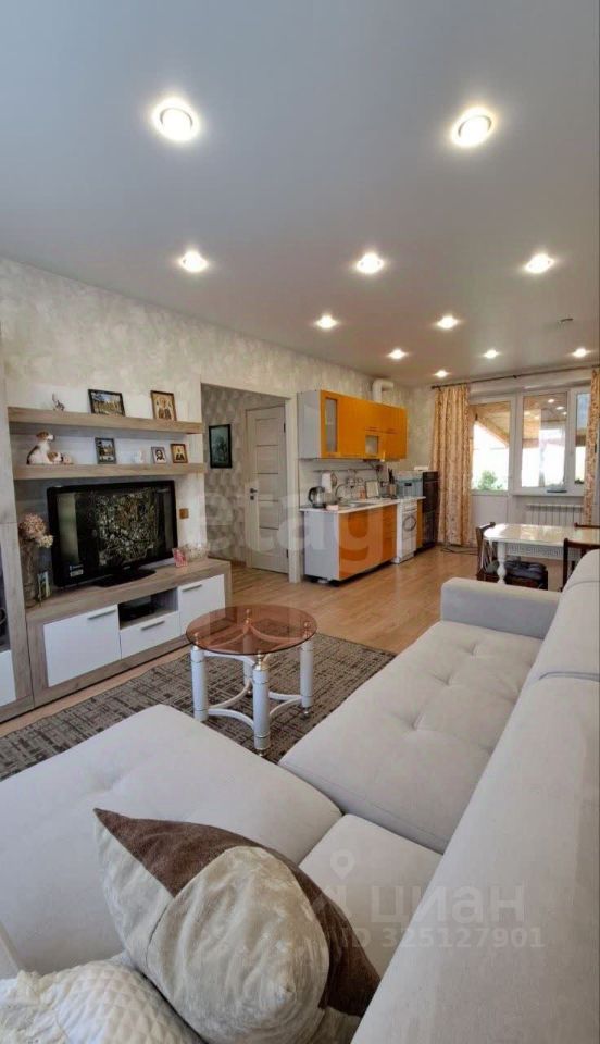 Дом из керамзитобетонных блоков, облицовка кирпич, с газовым отоплением, центральным водоснабжением и канализацией. В доме выполнен современный ремонт, полностью готов к проживанию. На первом этаже тёплый пол, прихожая, холл, котельная и санузел, просторная кухня-гостиная с выходом на участок. На втором этаже находятся 3 спальни.