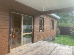 Дом выполнен из бруса окладника , на свайно-винтовом фундаменте , обшит сайдингом , утеплитель , каменная вата , 50 мм , с красивой , ажурной террасой .