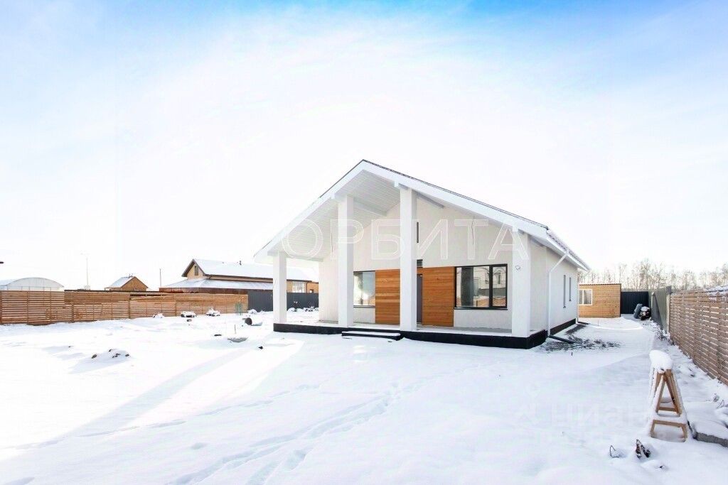 Небольшой и уютный одноэтажный дом с террасой площадью 128 кв. м и двумя спальнями. Фундамент ростверк на буронабивных сваях, стены керамзитоблок, кровля гибкая черепица, фасад декоративная штукатурка.