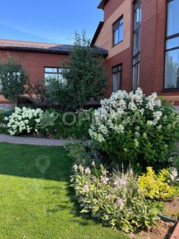 Ландшафтный дизайн на подъезде к дому и внутри сада с плодоносными деревьями. На территории имеется алюминиевая теплица, летняя кухня с барбекю и мангалом. Гараж на две машины с возможностью расширения. Также имеется дровяник с погребом. Забор полностью из Голицынского керамического кирпича.