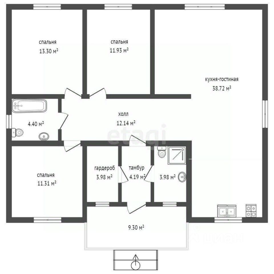 Удобная планировка включает просторную кухню-гостиную и три уютные спальни, что создаст идеальные условия для семейного отдыха. Площадь участка в 9 соток предоставляет множество возможностей для обустройства придомовой территории: вы сможете создать красивый сад, уютную зону для барбекю или детскую площадку.