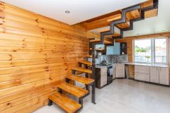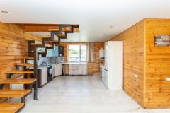 На первом этаже расположена большая кухня-гостинная, где можно проводить время с семьей и друзьями, также личный кабинет, санузел, техническое помещение. Второй этаж включает две светлые спальни, обеспечивающие уединение и отдых. На второй этаж ведет удобная деревянная лестница.