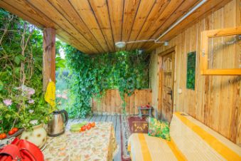 На земельном участке площадью 8,5 соток расположен летний бревенчатый дом, две теплицы, сарай и большая новая баня с комнатой для отдыха площадью 18 кв.м.