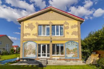 Во всем доме внутри и снаружи собственноручно выполнена лепнина и роспись стен.