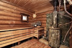 Шикарная баня с зоной отдыха и панорамными окнами.