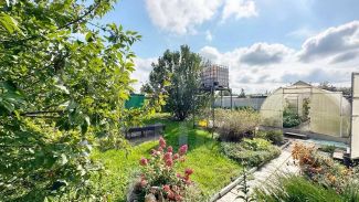 В обществе уже собраны средства на центральный водопровод. На участке имеется жаркая баня на дровах, с комнатой на втором этаже. Зона барбекю с мангалом, беседкой и качелью. Две теплицы, колодец, бак для воды. Большое разнообразие плодово-ягодных насаждений. При въезде на участок, большая парковка для автомобилей, под навесом.