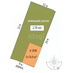 Расположен на земельном участок 2,8 соток, сам дом площадью 76,9 м2.