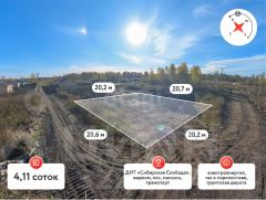 Продаю отличный и просторный земельный участок площадью 4 сотки , который прекрасно подойдёт для постройки вашего загородного дома или дачи. Участок имеет правильную прямоугольную форму и расположен в живописном ДНТ "Сибирская Слобода", всего в 4 км от д. Решетниково, по Салаирскому тракту .