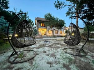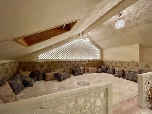 Просторная гостиная с панорамным остеклением и открытым камином. Очень светлая и просторная кухонная зона. Второй этаж включает в себя спальные-гостевые комнаты и санузлы. Также имеется выход на открытую террасу. На третьем (мансардном) этаже ремонт выполнен в восточном стиле, мансарда 100 м2 включает в себя просторнейшая гардеробную и места для отдыха. В цокольном этаже имеется овощехранилище, котельная и мастерская с множеством мест хранения инструмента и инвентаря. Ремонт в коттедже выполнен в светлых, приятных тонах, материалы качественные и дорогостоящие.