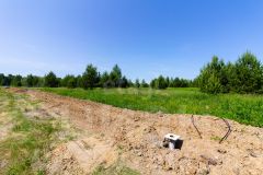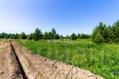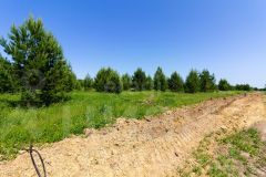 Участок находиться в окружении молодых сосен и многолетних деревьев.