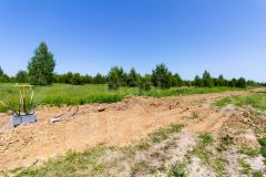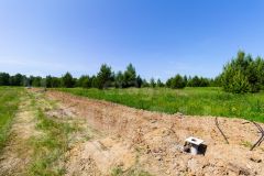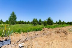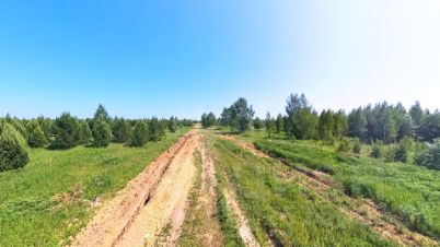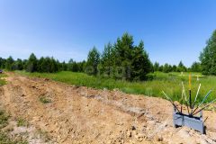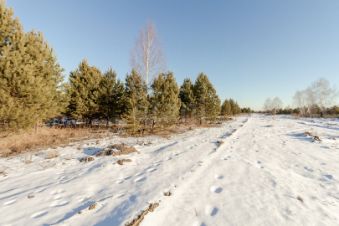 Участок находиться в окружении молодых сосен и многолетних деревьев.