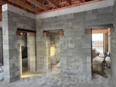 Дом: 149 м², 1 этаж, 2+ комнаты, керамзитобетонные блоки с каменной облицовкой.