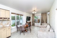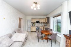 Просторная планировка включает в себя большую кухню-гостиную 23 м.кв и две светлые спальни по 12,5 м.кв, совмещённый санузел 4.0 м.кв и котельную.