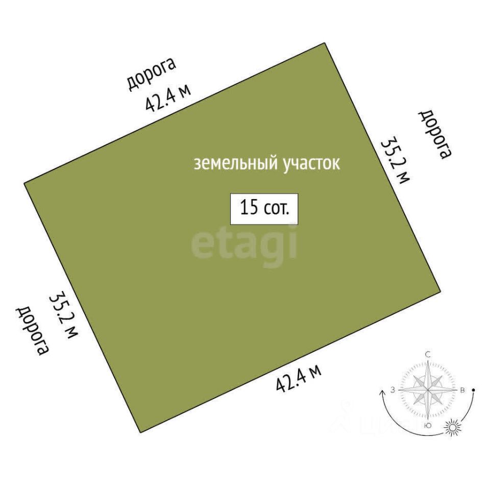 Площадь: 15 соток — достаточно места для большого дома, сада, огорода,