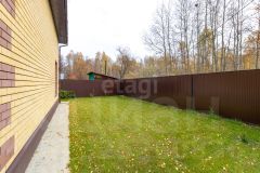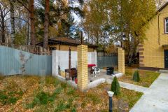 На территории сосны, красивый ухоженный газон, беседка, но ещё недостроенная.