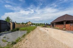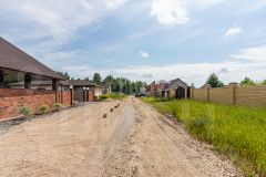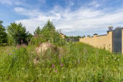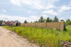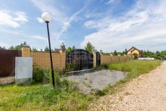 Размер 10 соток, правильной формы. Дорога - щебень. Участок на высоком месте, доступ на него обеспечен за счет оканавливания и железной трубы. Огорожен капитальным забором из кирпича со всех сторон. Выведен кабель для видеодомофона и фонарей на столбах забора.
