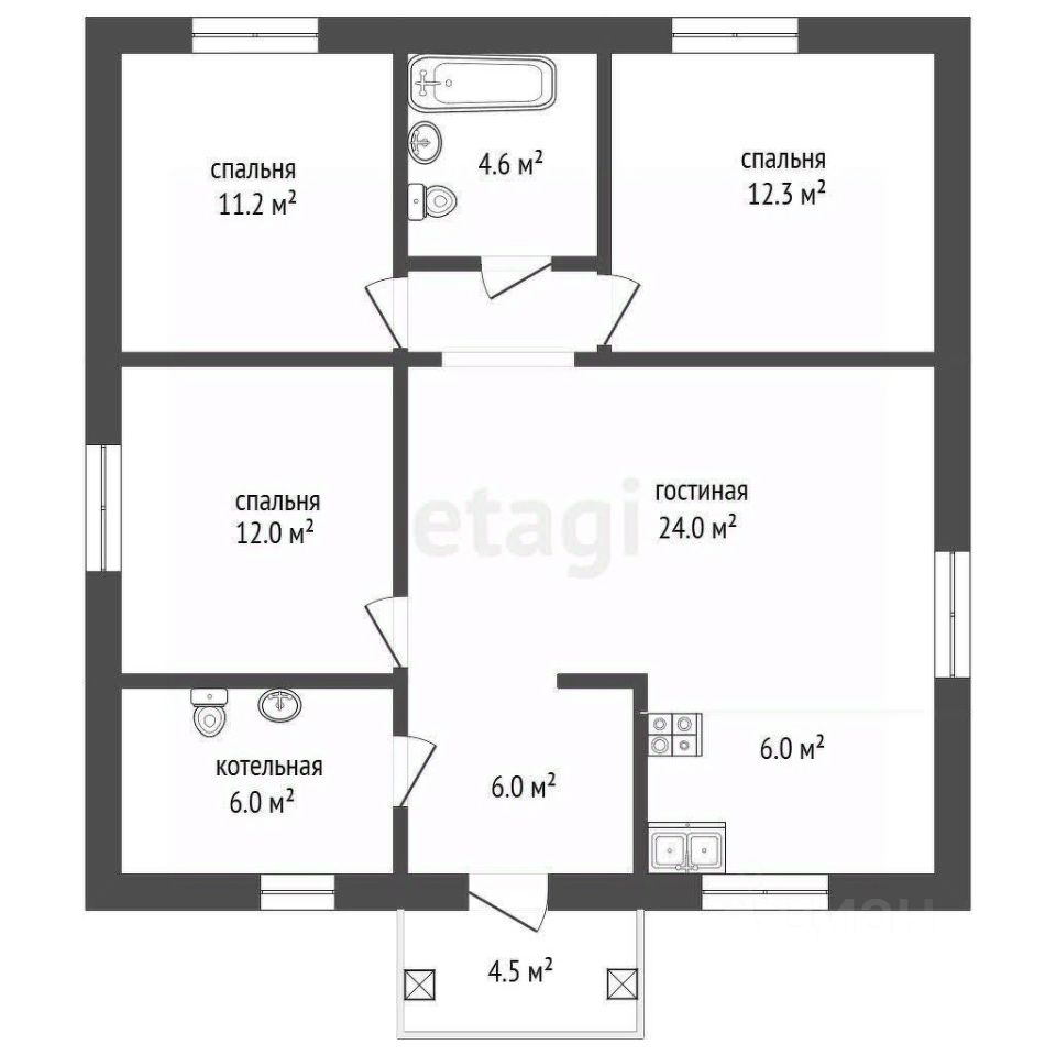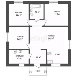 Дом 84,9 м² | 3 комнаты + кухня-гостиная