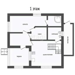 2 этажа, площадь 85м2. Планировочным решением предусмотрено: на первом этаже просторная кухня гостиная, ванная комната с душем и ванной, сан.узел+ котельная, баня, комната отдыха; на втором этаже большое помещение, расзонированое на взрослую спальню и детскую комнату, гардеробная.