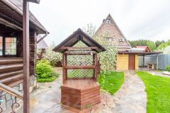 Участок правильной формы, большой, ухоженный, огорожен красивым забором с автоматическими воротами для заезда. Из насаждений плодоносят яблоня, вишня, смородина, жимолость. Есть теплица. На участке оборудована зона отдыха для барбекю, парковочное место под авто, мастерская, дровяник, колодец.