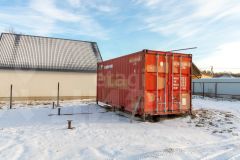 Участок площадью 10 соток полностью огорожен забором из профлиста на металлических столбах.