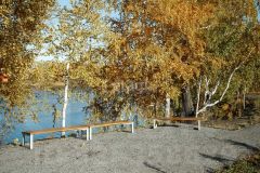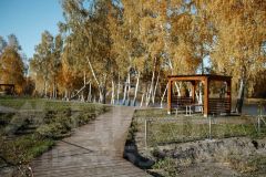 В 20-25 минутах ходьбы от участка организована пляжная зона на р.Кармак, с облагороженной береговой линией, волейбольной площадкой, беседками, скамейками, лежаками и качелями для жителей этого КП. Никого чужих не будет , т.к. территория приватная, закрытая!