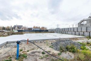 На земельном участке залита фундаментная подушка под строительство дома в 2 этажа 14*14м и гаража 8*10 м.