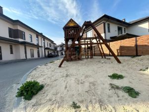Жить в этом таунхаусе - это значит жить в комфортной среде с развитой инфраструктурой: рядом расположены детский сад и школа, магазины, супермаркеты, экопарк, детские площадки. Удобные асфальтированные дороги обеспечат вам быстрый и комфортный выезд в город.