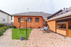 Жилой дом 160 кв.м.: три уютные спальные комнаты, оборудованный кабинет, просторная гостиная с настоящим дровяным камином, отдельная просторная кухня. Ремонт выполнен по индивидуальному дизайн-проекту. Высота потолков 3,2 метра. Стены идеально ровные, выкрашены в постельные тона. Под домом имеется цоколь, который при желании можно оборудовать под спортзал либо кинотеатр. Отельная котельная со всеми центральными коммуникациями: вода, канализация, электричество. Из дома теплый переход в банный комплекс с замечательной видовой комнатой отдыха, душем, ванной, летней кухней и самой парной. Имеется просторный отапливаемый гараж на 2 автомобиля: полы выстелены плиткой, слив воды оборудован в центральную канализацию (можно в гараже мыть автомобили). Дом, гараж, котельная и банный комплекс представляют единую постройку под общей крышей общей площадью 227 кв.м., обеспечивая комфортное перемещение в любую погоду. Также на участке есть новая просторная закрытая беседка для приёма гостей.