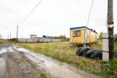 На 10-ти ЖБИ сваях (150150, 3 метра) установлен металлический вагон без внутренней отделки (длина - 11,5 м, ширина - 3 м). Подключен свет (щиток в сборе, 380 вольт, 15 киловатт). Участок ежесезонно расчищается от растительности и корней посредством вызова трактора-мульчера, обработан от клещей. Отлично подойдет для дальнейшего строительства.