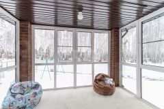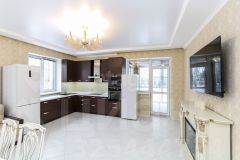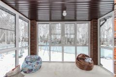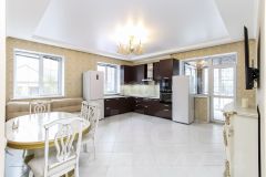 Дом выполнен из керамзитобетонных блоков с утеплением и облицовкой кирпичом, что обеспечивает высокую энергоэффективность. Крыша из металлочерепицы, окна пластиковые. На первом этаже расположены прихожая, бойлерная, санузел, две комнаты и просторная кухня-гостиная с выходом на веранду свыше 12 м². Практически вся мебель и техника остаются новому владельцу. Под лестницей организовано удобное место для хранения. На втором этаже находится большое открытое пространство, которое можно легко зонировать на три отдельные комнаты под спальни, кабинет или гостевую зону; здесь же выведен санузел.
