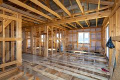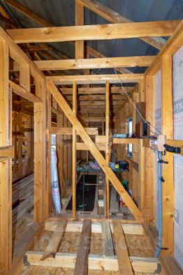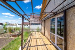 На участке строится жилой каркасный дом 80 м2, на винтовых сваях, с двумя спальнями по 12 м2, и большой кухней-гостиной 32 м2, совмещенным санузлом 6 м2 и котельной 6 м2.