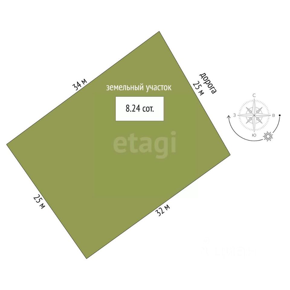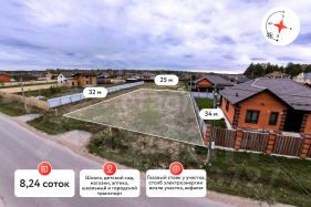 - площадь участка, 8,2 сот., размеры 25м. х 33м.