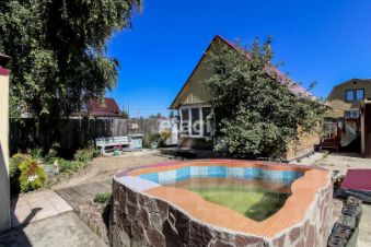Также на территории располагается уличный туалет и сарай, бассейн 3*3, глубиной 1,5м, костровая зона, зона барбекю, спортивный уголок, игровая детская зона с песочницей и для садоводов-любителей есть огородик с грядками, теплицей и множеством плодоносящих деревьев. Для удобства полива трубы разведены по участку.