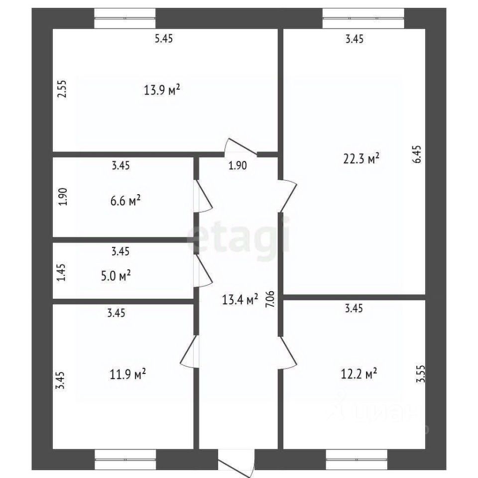 Планировка продумана для удобства: на первом этаже расположены три изолированные комнаты, просторная кухня-гостиная, два санузла, гардеробная и котельная. Мансардный этаж оставлен свободным — его можно утеплить и обустроить под дополнительные спальни, кабинет или зону отдыха. Высокие потолки и большие окна создают ощущение простора и наполняют помещения естественным светом. Участок позволяет разместить парковку, летнюю террасу или сад.