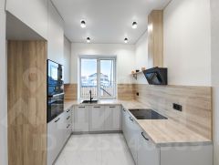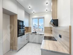 Установлены кухонный гарнитур и бытовая техника: встроенные духовой шкаф, микроволновая печь, варочная панель на четыре конфорки, вытяжка, мойка, смеситель;