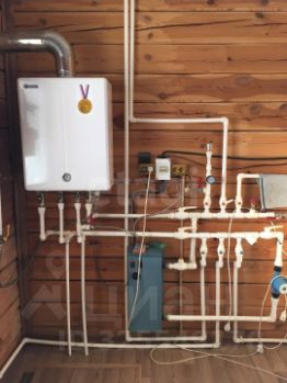 Заведено электричество, установлен газовый котел для отопления. Вода поступает из колодца посредством насоса с подогреваемым контуром.
