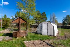 На участке расположен дом, электричество заведено. На участке есть хозпостройка, 2 теплицы и баня. Новый колодец. Из многолетних насаждений на участке: вишня, яблони, слива, груша, смородина, крыжовник, цветы-многолетники.