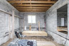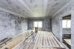 8/9 метров. Керамзитоблок 30 см. Стоит на ленточном фундаменте 40 см шириной 1 метр высотой. Крыша готова под мансардный этаж.