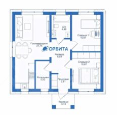Планировка дома (64 м²): Кухня-гостиная• 2 спальни