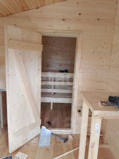 В доме никто НЕ жил, приятно пахнет деревом. Крыша- современная мягкая кровля, не будет нагреваться. Дом 40 квм. очень теплый, утеплитель обшит ОСБ и корабельным сайдингом- это значит Вам не надо красить фасад. Качественная отмостка под цвет крыши.