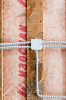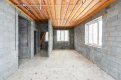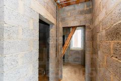 Фундамент -плита из бетона М250, два уровня арматуры диаметром 12. Стены керамзитоблок 300. Утеплитель мин вата 50. Облицовка кирпич цвет шоколад Брылино. Сделан армопояс. Четырехскатная крыша из мягкой черепицы Тегола(TEGOLA). Разводка электричества проведена, газ. Окна тройной стеклопакет. Есть отдельный выход на террасу из дома. Скважина облагороженная(сделан киссон). Септик переливной. Выведены все коммуникации под баню.